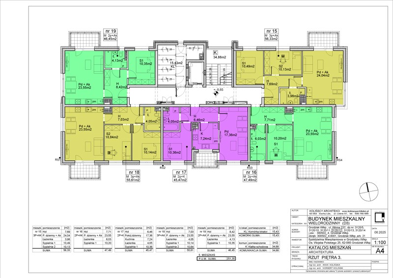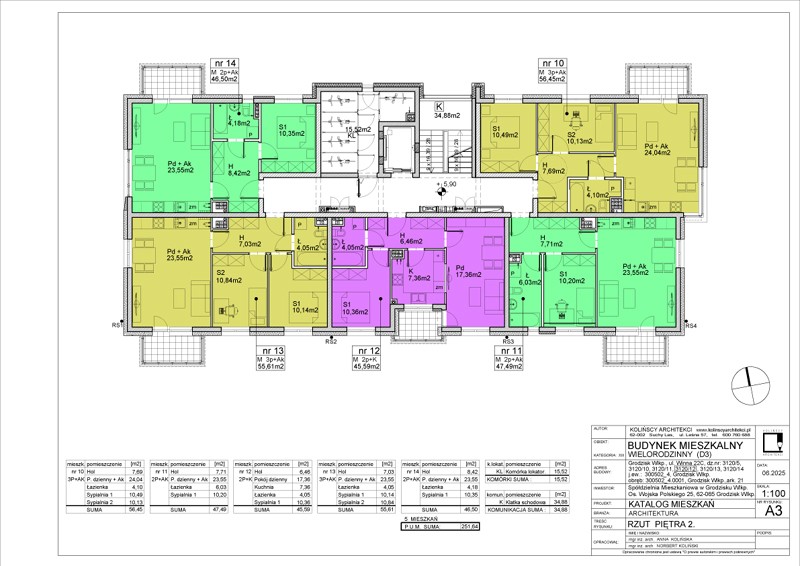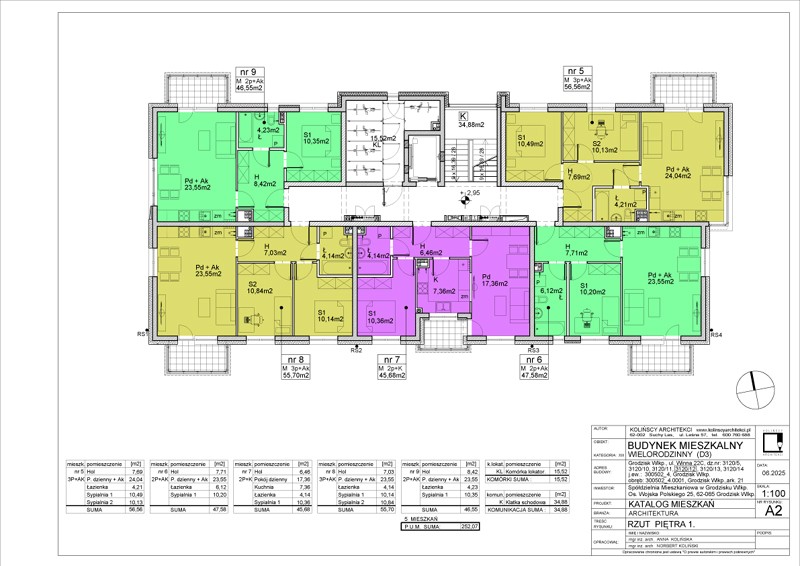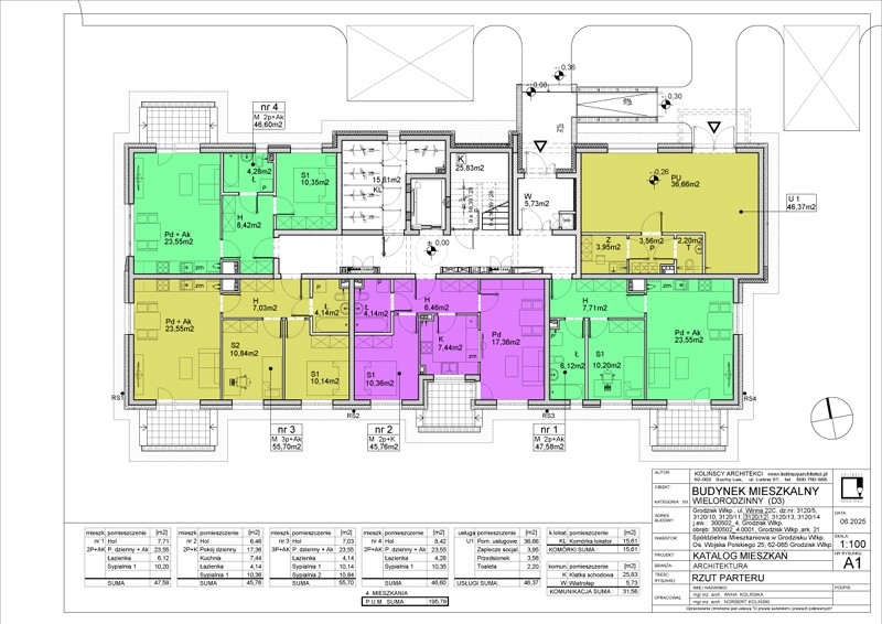 W budynku będą się znajdować 24 mieszkania 2- i 3-pokojowe o powierzchni użytkowej od 45,42 do 56,56 m2 oraz jeden lokal usługowy. Do każdego mieszkania przypisana jest dodatkowo komórka lokatorska o powierzchni ok. 2 m2. W klatce schodowej znajdować się będzie także suszarnia i boks na wózki/rowery.
